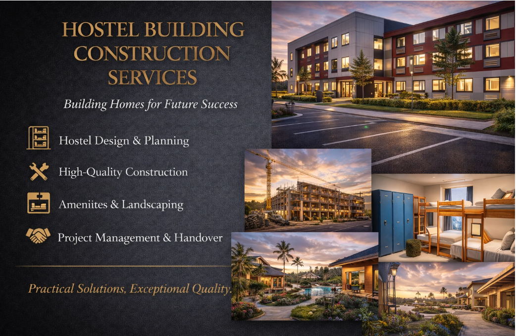 Well-planned hostel construction ensuring safe, comfortable, and space-efficient living environments with modern amenities and strong structures.